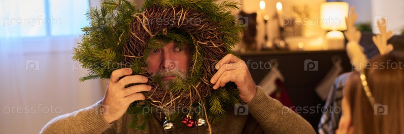 Украшение венка с праздничными украшениями