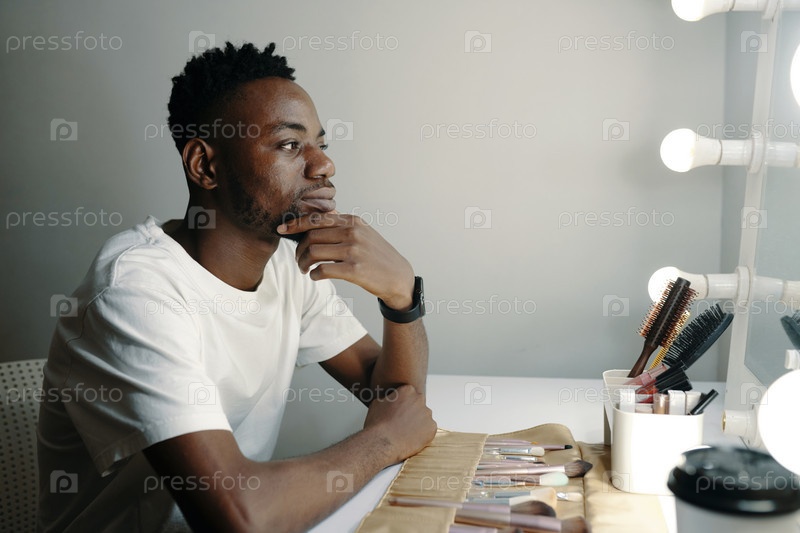 Созерцание мужчины в макияжной комнате с помощью фонариков