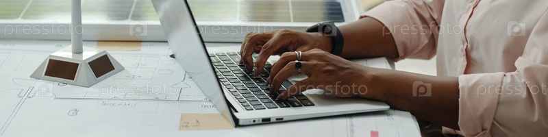 Женщина, работающая онлайн на ноутбуке