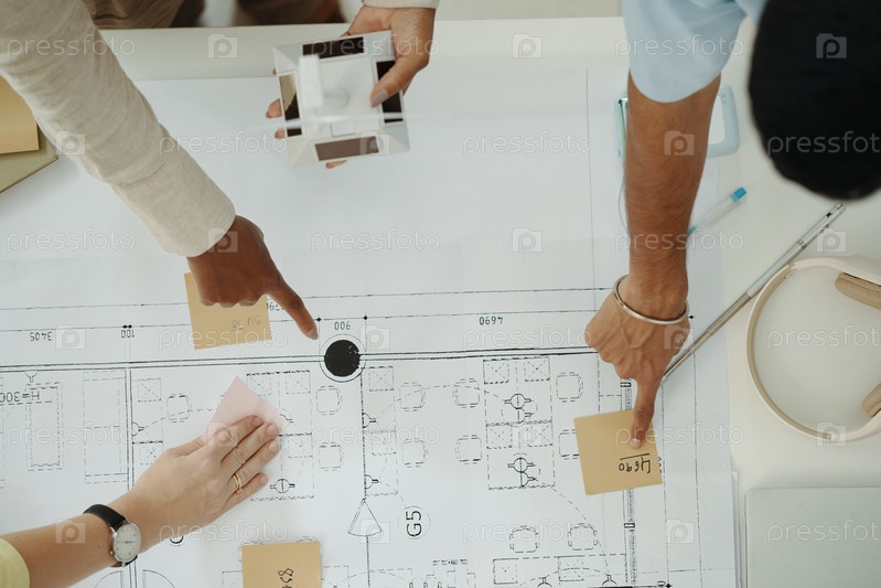 Инженеры делают чертежи зеленой энергетической системы