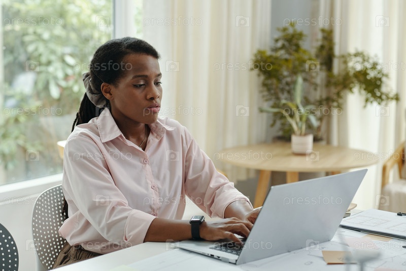 Деловая женщина, работающая онлайн на ноутбуке в офисе