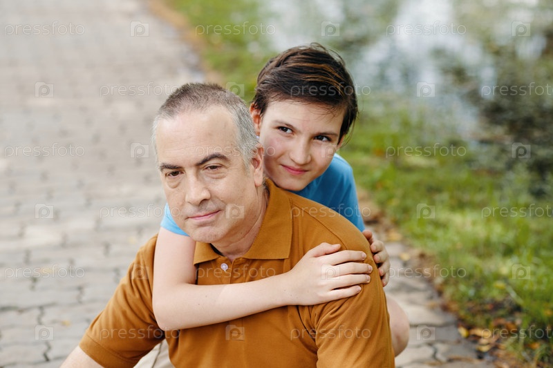 Внук обнимает своего старшего деда