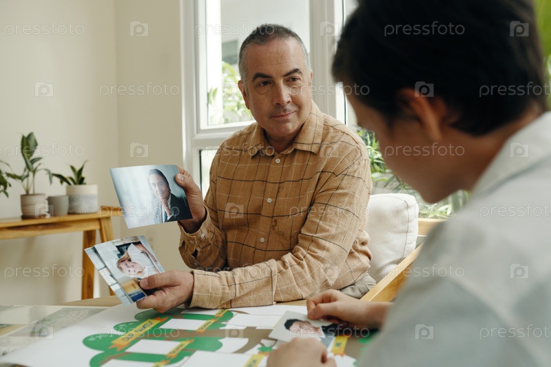 Дедушка помогает создать семейное дерево