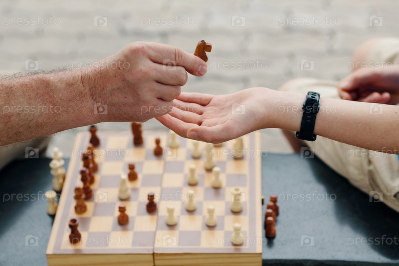 Дедушка учит своего внука играть в шахматы