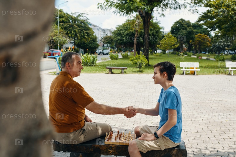 Дедушка пожимает руку внуку после игры