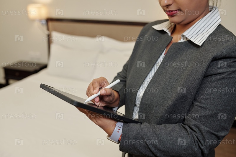Женщина держит планшет, пишущая ручкой