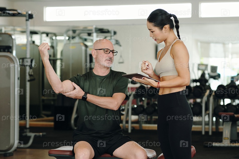Мужчина-старший занимается с личным тренером