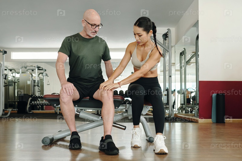Помощь пожилому человеку с физиотерапевтическими упражнениями