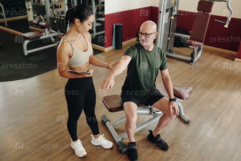Мужчина получает личную подготовку в спортзале для старшеклассников