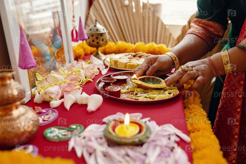 Выполнение традиционного индуистского ритуала для молитвенной церемонии