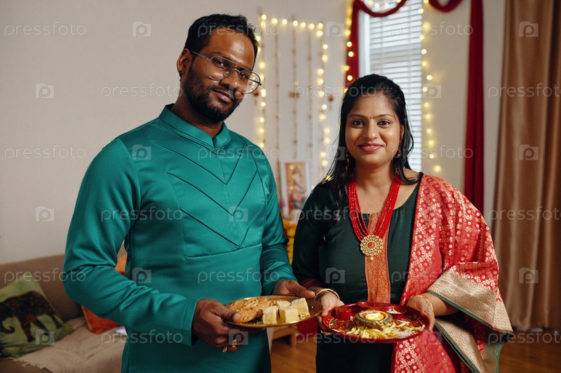 Празднование индийского фестиваля в традиционных нарядах