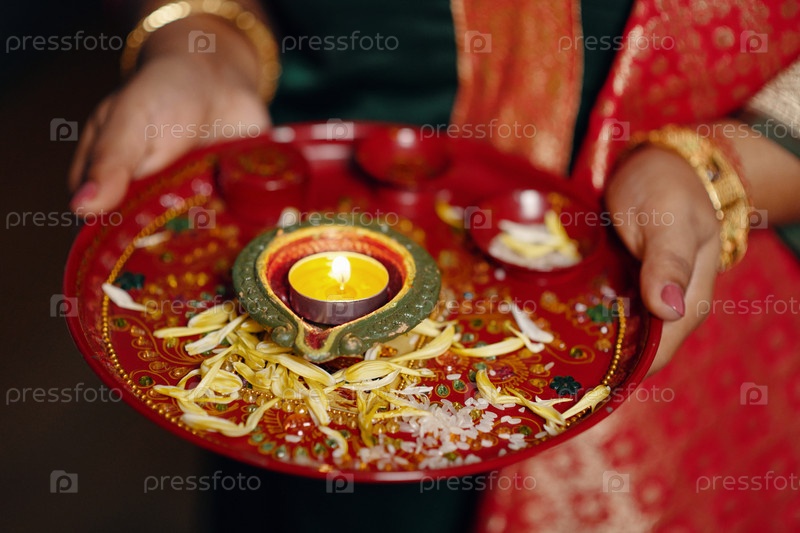 Предложение священных предметов во время традиционной индийской церемонии