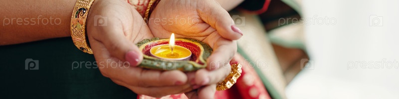 Держу традиционную лампу Дия с горящим пламенем