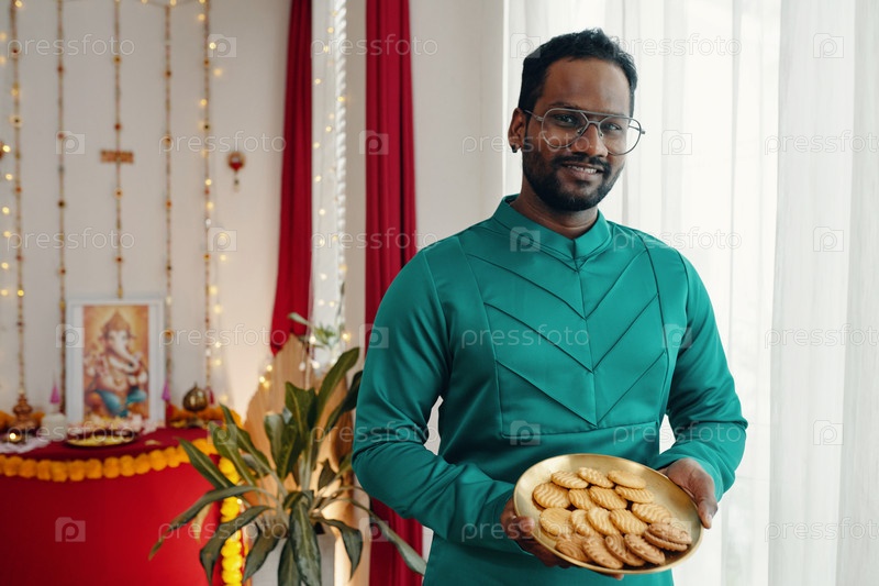Тарелка с традиционными праздничными сладостями улыбается