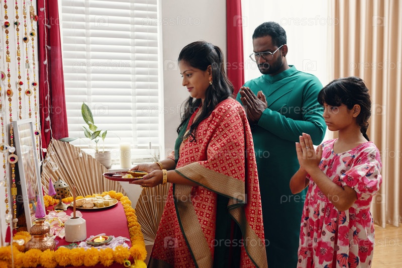 Семья участвует в культурной ритуальной церемонии внутри дома