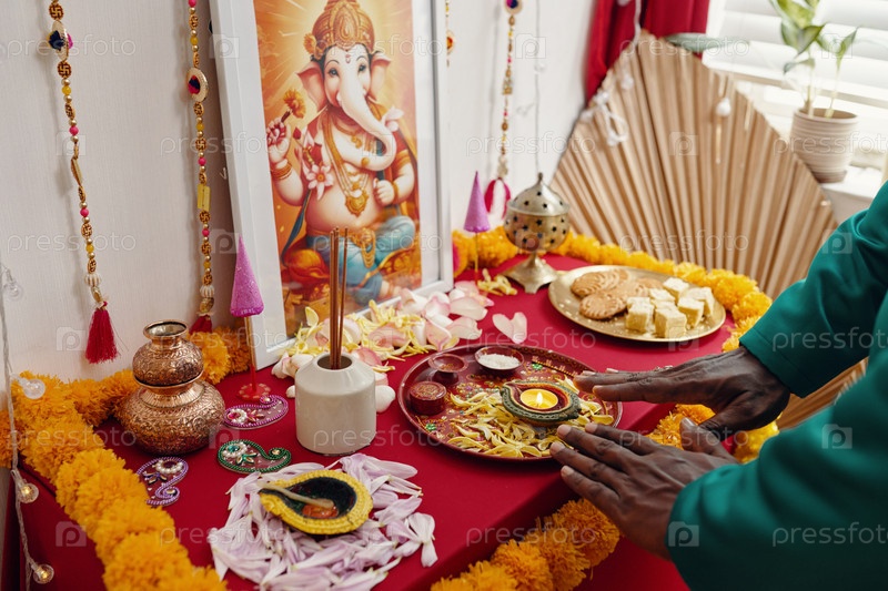 Оформление священного пространства с помощью элементов индуистских ритуалов