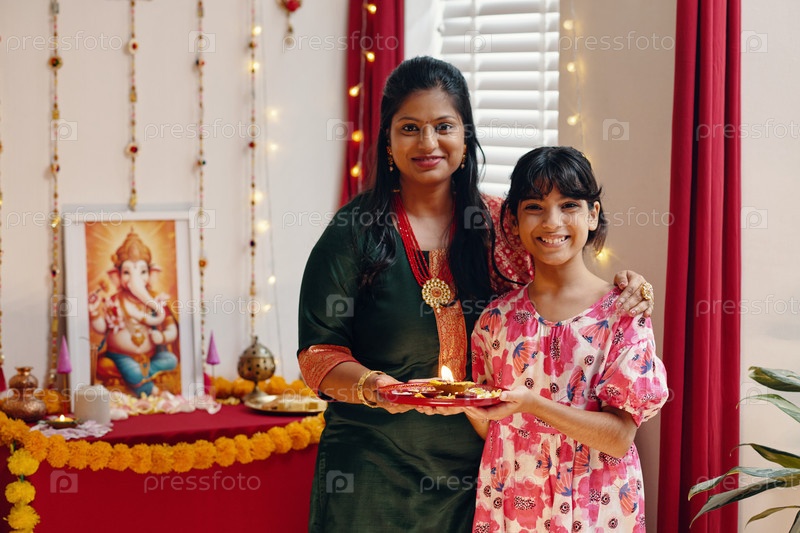 Празднование традиционного индийского фестиваля дома с семьей