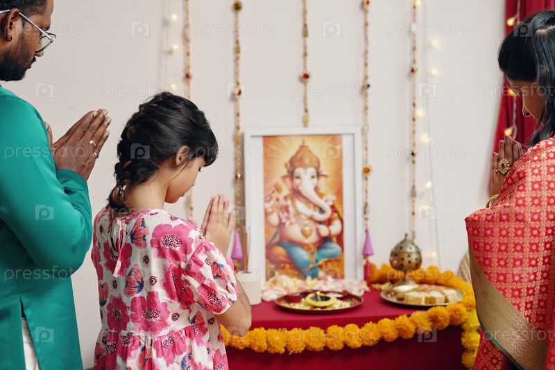 Поклонение Господу Ганеше во время индуистского фестиваля
