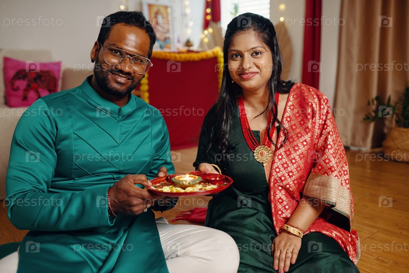 Улыбающаяся пара празднует традиционный фестиваль вместе