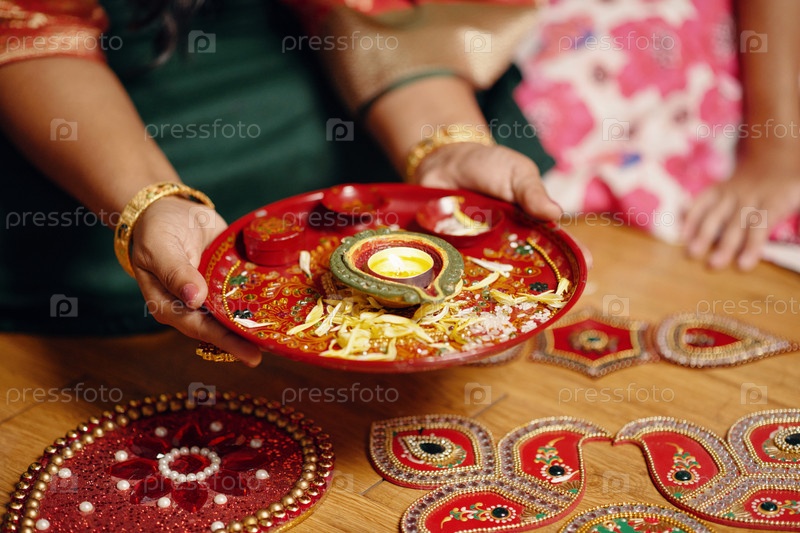 Оформление тарелки традиционными индийскими узорами и красками