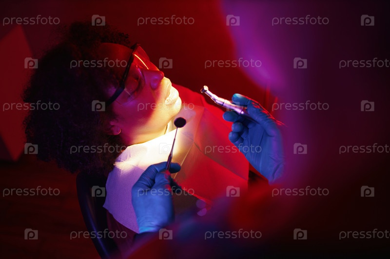 Получение стоматологического осмотра со специальным освещением