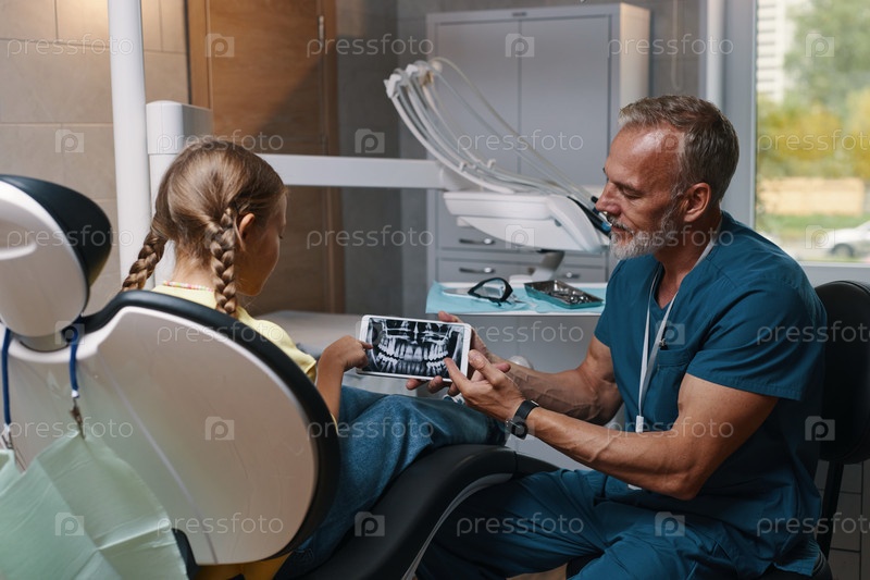 Стоматолог объясняет процедуру лечения молодому пациенту