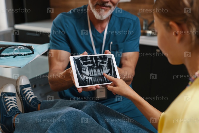 Обзор зубных рентгеновских лучей на цифровом устройстве в клинике