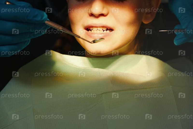 Пациент, получающий стоматологический осмотр у зубного врача