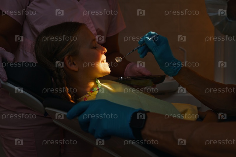 Стоматолог проверяет зубы молодого пациента во время обследования