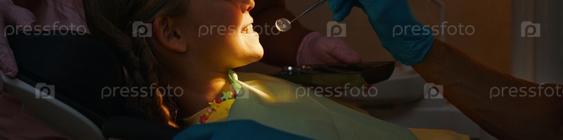 Ребенок, проходящий стоматологическую процедуру, носящий защитный биб