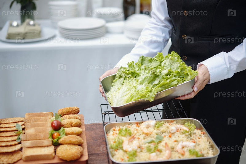 Подготовка свежего салата на профессиональном мероприятии по питанию
