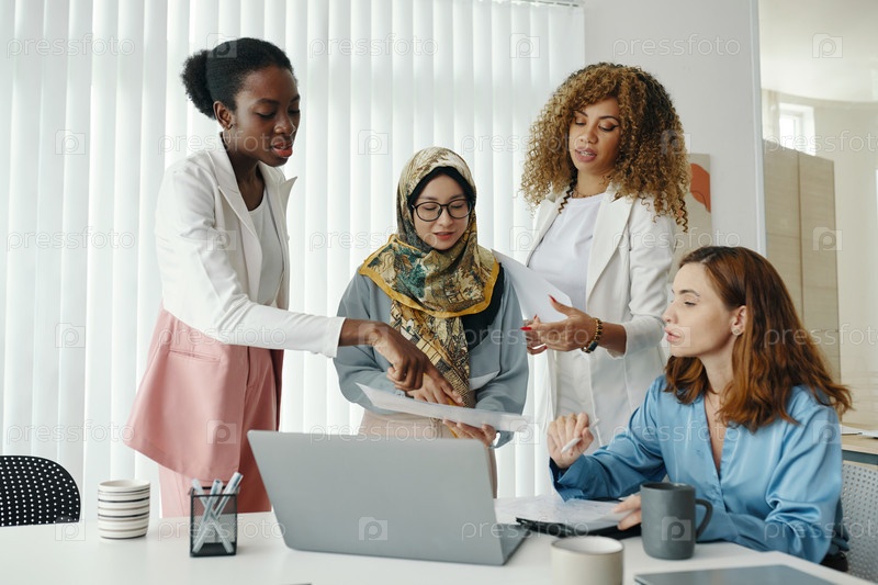 Разнообразная группа обсуждает бизнес-стратегию в офисе