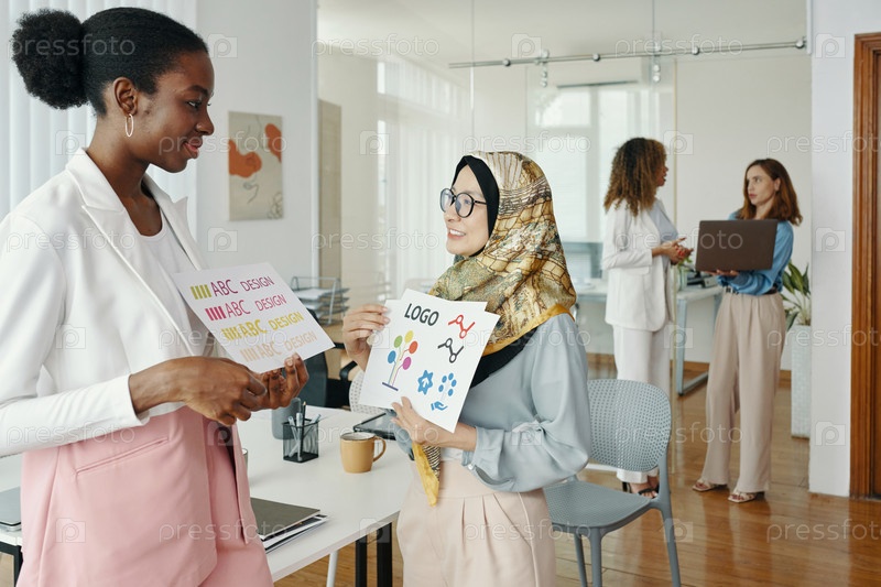 Обсуждение концепций графического дизайна в офисной обстановке