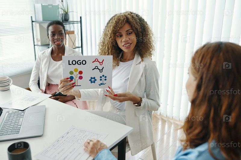 Представление инновационного дизайна логотипа во время деловой встречи