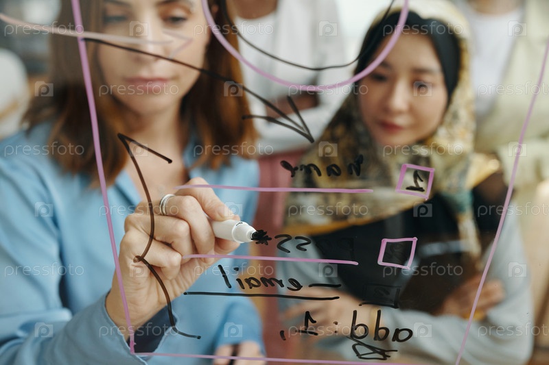 Сотрудничество и мозговой штурм идей на четкой доске