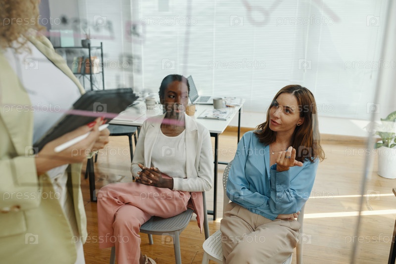 Обсуждение бизнес-стратегии с командой в современном офисе