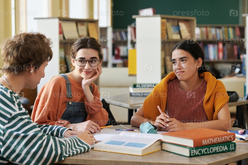 Обсуждение классного проекта в школьной библиотеке во второй половине дня