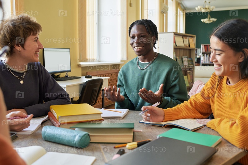 Коллаборативные студенты, сидящие в классе и учащиеся вместе