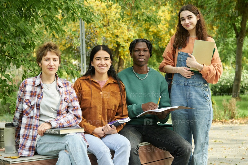 Изучение на свежем воздухе с группой разнообразных студентов