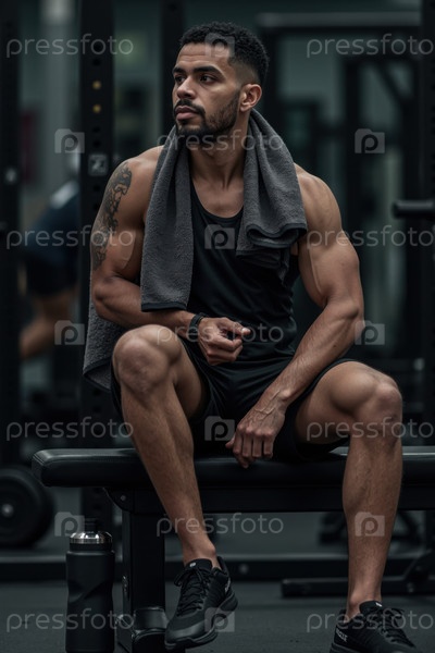 Созерцание тренировки, отдыхая на скамейке в спортзале