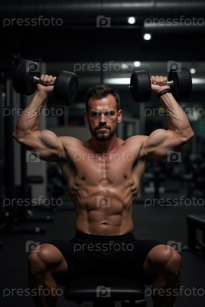 Подъем гантели в спортзале во время тренировки Мужчина