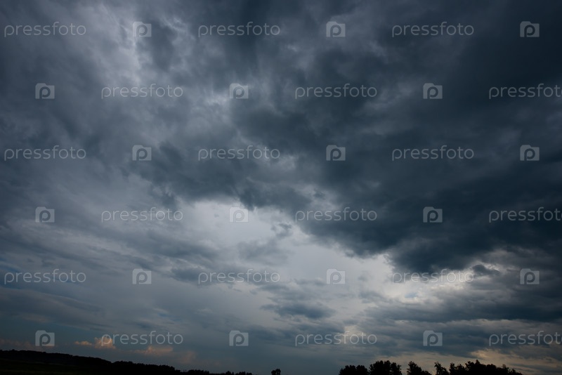 Россия. Юг Западной Сибири. Панорама вечернего летнего неба с разноцветными облаками над полями Кузнецкого Алатау