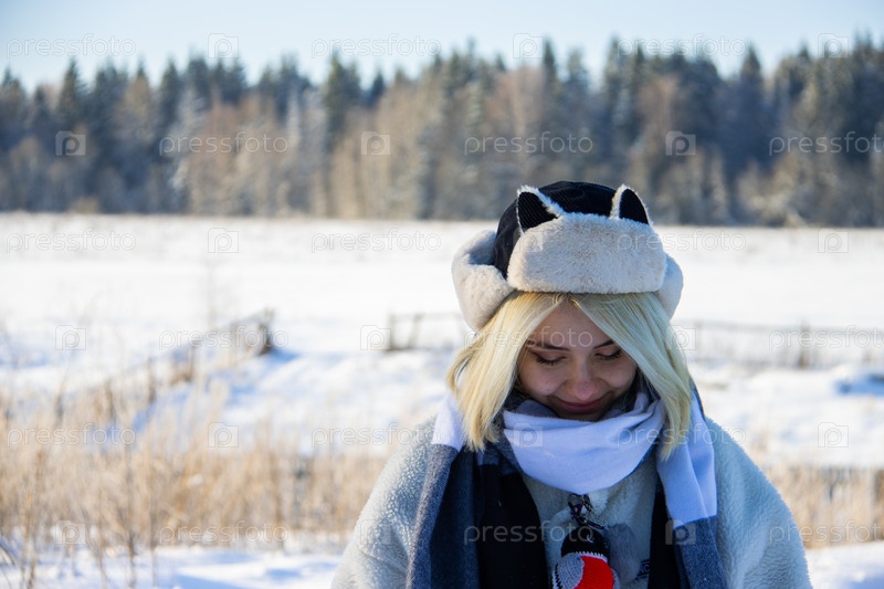 Молодая девушка зимой в деревенском поле