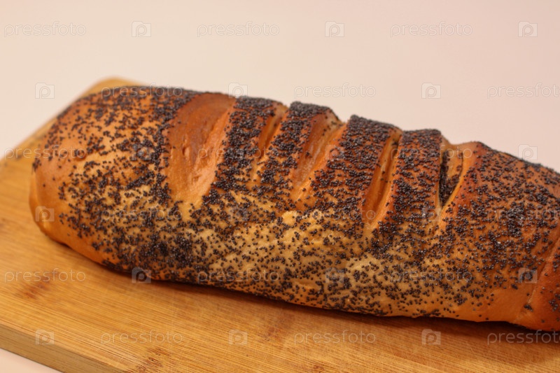 Длинная золотистая буханка хлеба с маком — настоящее лакомство на деревянной разделочной доске