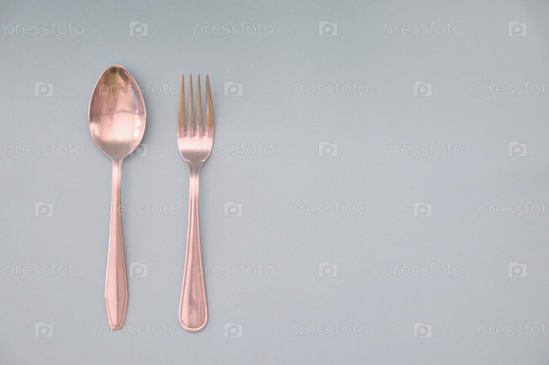 Столовая ложка и вилка разложены параллельно и изолированы на светлом фоне