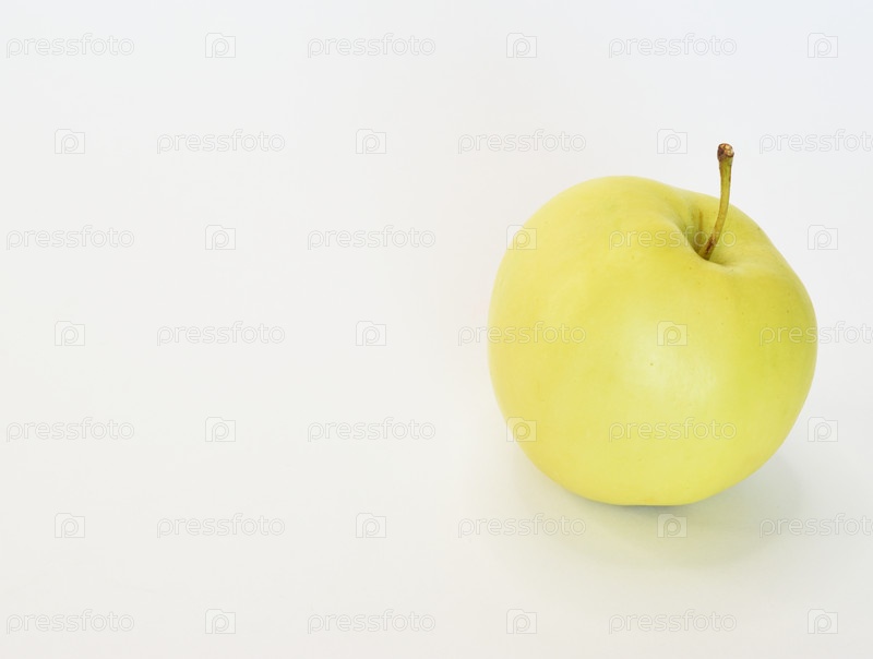 Сочное светло-зеленое яблоко, лежащее хвостиком вверх