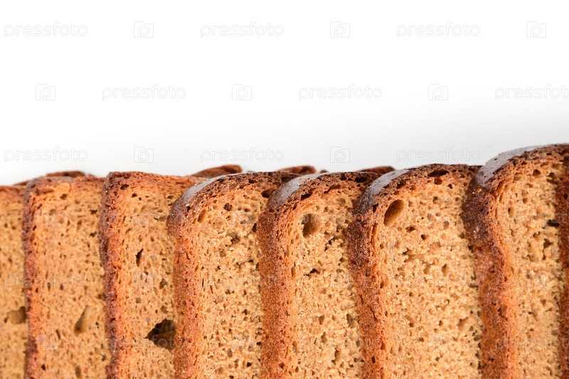 Кусочки черного хлеба, выложенные лестницей на белом фоне