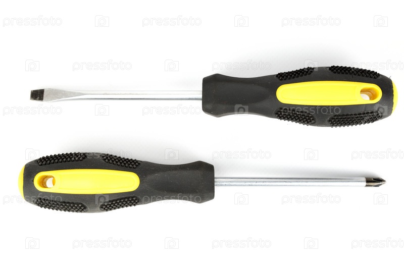 Крестовые и плоские отвертки с черными и желтыми ручками