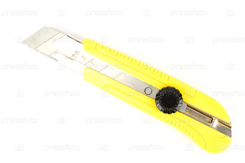 Нож для резки обоев с желтой пластиковой ручкой и выдвижным лезвием