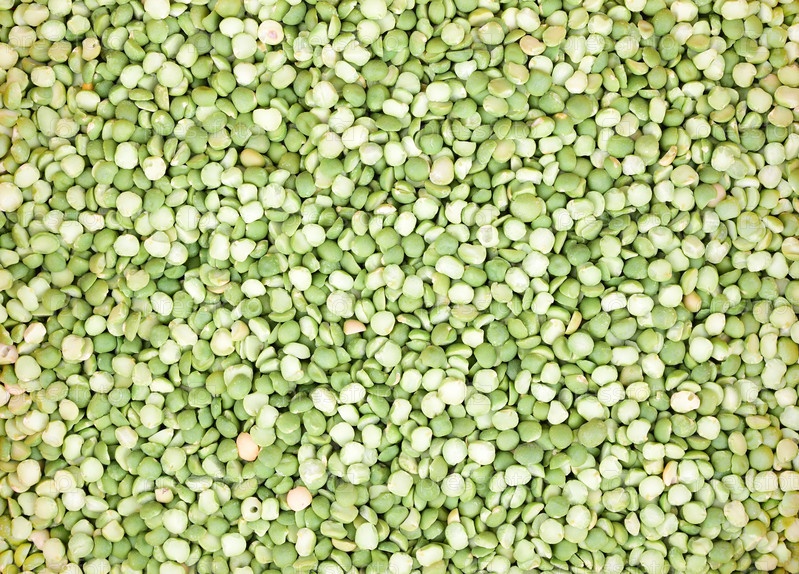 Зеленый сухой горошек, лежащий толстым слоем на ровной поверхности